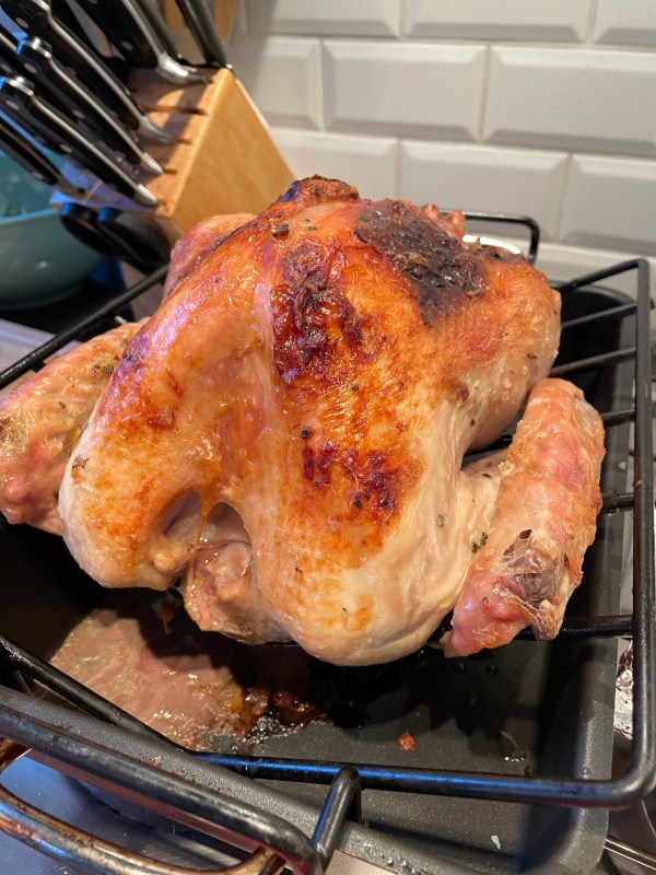 We were able to score a turkey for dinner today, but it was a bit of a challenge. Turkey doesn’t seem to be as popular here. The Dutch equivalent of Costco, Sligro, had whole frozen turkeys so we were able to get one there. We opted for the middle size, they came in sizes, which is 3.5 kg and cost about €30. For those of you who prefer pounds, that translates to a 7.7 lb bird at €3.89 per pound. So its a tiny, expensive turkey. The local expats store, Kellys also had whole turkeys as well as turkey breasts. So we will probably try their turkey next time.