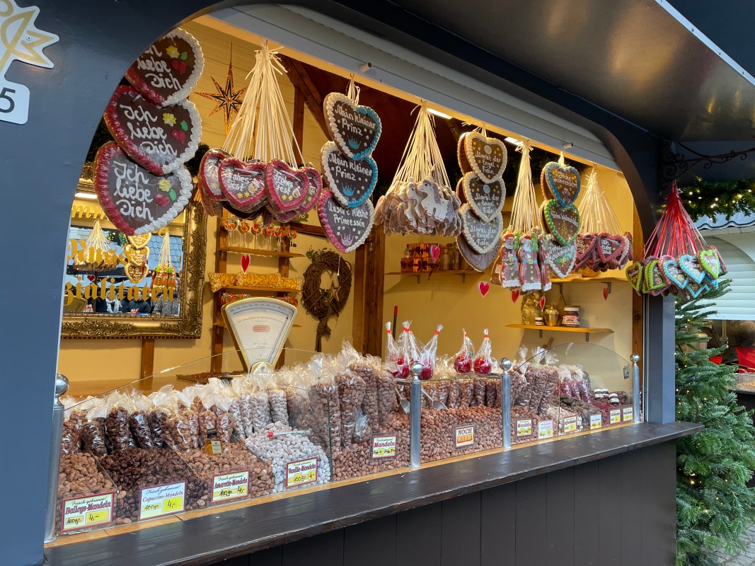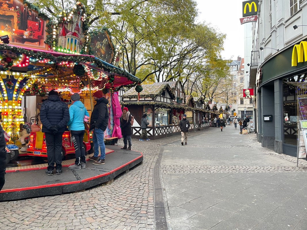 Markt der Engel (The Angels’ Market) was one of my favorites. It opened in the 1970s and is one of the markets that helped build Cologne’s reputation as a destination for Christmas markets. It is different from the other markets in appearance, with white-washed booths and lighted paper stars. This is also where you will find angels on stilts. It is a bit away from the central area, so we drove there, but it is walkable. It is closed on Sundays, so make sure you don’t plan it for that day.