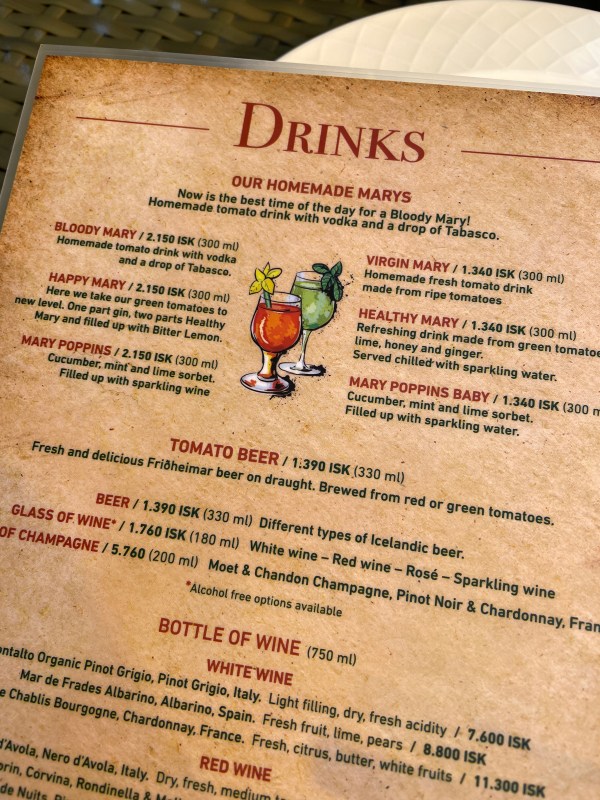 They have three versions of “bloody” Marys, each available in a virgin variety as well. We tried the Happy Mary, Mary Poppins and Mary Poppins Baby.