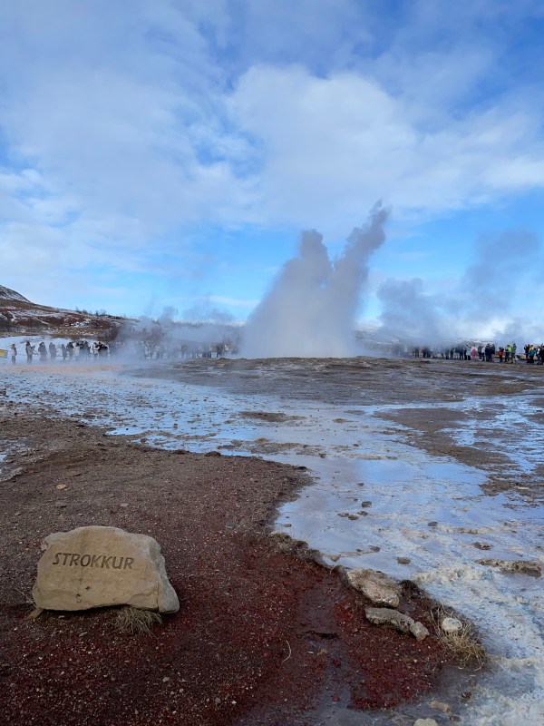 The Geyser Hot Spring Area is home to a number of active geysers, the largest and most well-known is the Strokkur Geyser, which shoots 30 m into the air. You can also see smaller geysers and bubbling pools. Be warned, here like many other areas in Iceland, the smell of sulphur is intense.