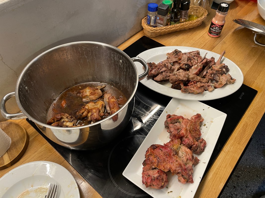 Because we arrived on Easter weekend, the grocery stores were sold out of lamb. Thankfully, our airbnb hosts knew of a “butcher” just up the road. I am not sure North Americans would describe Spiros as a butcher, but rather call him a farmer. When my husband wandered up the road, there was Spiros milking his goats with lamb running around in a field. He offered to let my husband pick his own – currently running in the pasture – but instead we opted for one that was slaughtered the day before. Clearly this was the freshest meat we would ever eat. Back at the villa, the lamb was broken down further and prepared three ways – roasted, grilled, and braised.