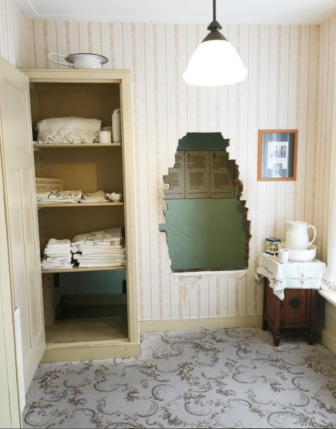 In an effort to provide additional security, the family built a false wall in Corrie’s bedroom, where their “guests” could hide in the event of a raid. Here is the actual room, obviously with the wall open so you can see how truly tiny the space was. People had to crawl through the bottom shelf of the cupboard to access the spot and the last person in would close up the hatch.
