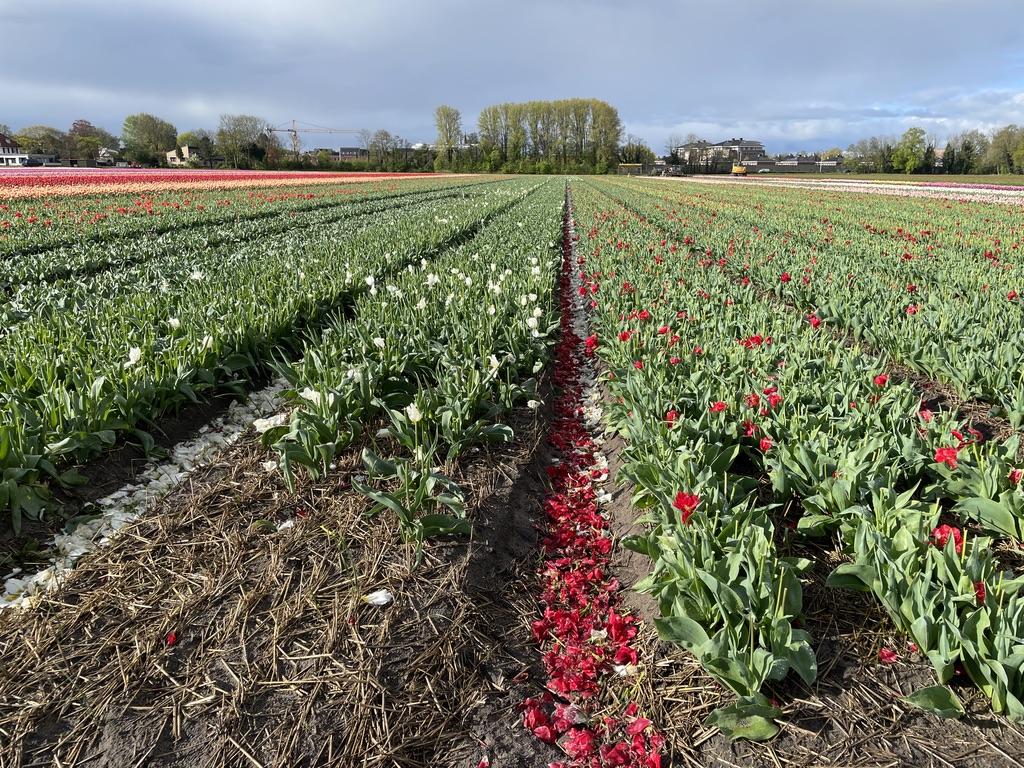 Here is what you will see in the fields. The farmers deadhead the tulips so they stop using energy for the flowers and energy is returned to the bulb.