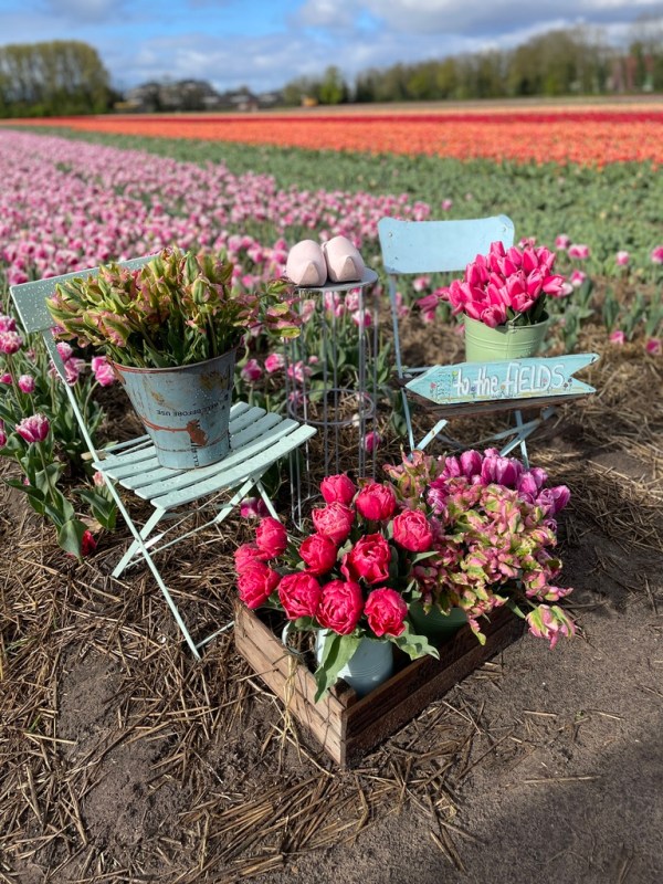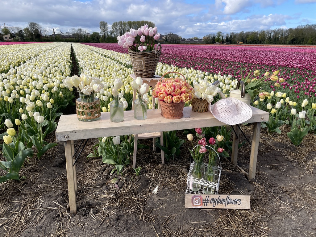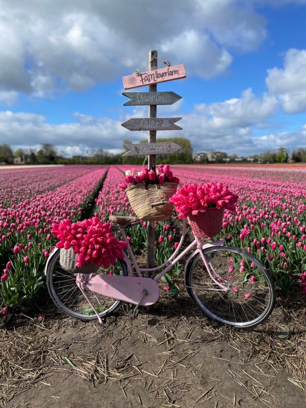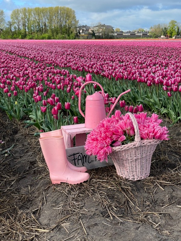 This time last year, I was so sick with allergies. I had never been so sick, literally. I went to the world-famous Keukenhof Gardens, and let’s just say it was a low point. So, despite tulips being my favorite flower and living where tulips are everywhere, I didn’t make it out to any of the fields. This year has been different, thanks to the miracles of modern allergy medications. Yesterday, I went to my first official tulip field at FAM Flower Farm, which was everything I had expected. The weather was as expected, too. When we left the house it was sunny and cold, 15 minutes later when we arrived at the farm it was raining. About 10 minutes later, the sun was out. The nice thing was we were left with water droplets on the petals, which made for some great photographs.