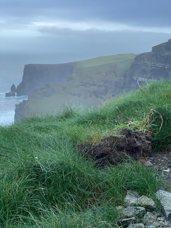 The following day, we headed to our second key spot for the trip – the Cliffs of Mohr. It was still drizzly, but this didn’t detract from the fantastic views. It is best, and cheapest, to book your tickets for the cliffs online, in advance. They limit the number of people that can enter at a time. Once on-site, you can stay as long as you want, but book ahead if you want to go at a specific time. We reserved 9 a.m., allowing us to arrive between 9 a.m. and 10:59 a.m. When we arrived at 10 a.m., it was quiet, but when we left at 11 a.m., the tour buses had started to arrive and it was getting busy. I can only imagine what it must look like in the summer during peak tourist season.