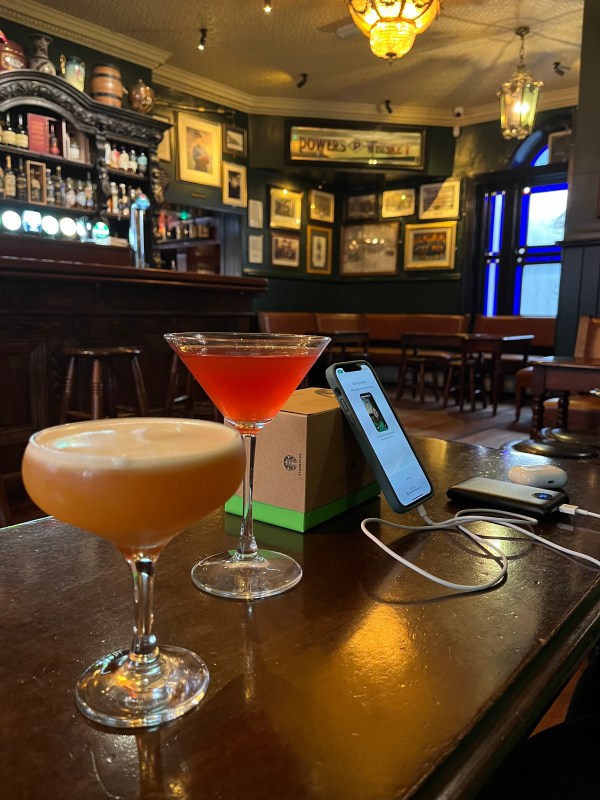 So what did we do? We found a quiet place to dial in, which just so happened to be a pub. Yes, the cocktails remained off-screen. European parenting…